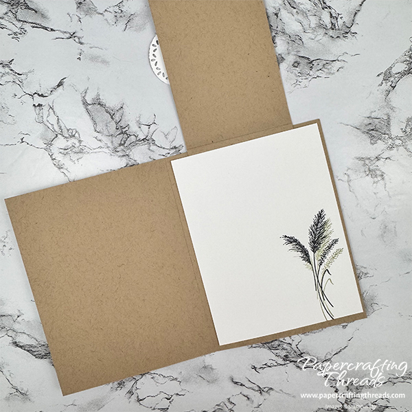 The result is highlights of copper embossing powder, perfect for mimicking the copper foil on the designer series patterned paper used on the front of the card.