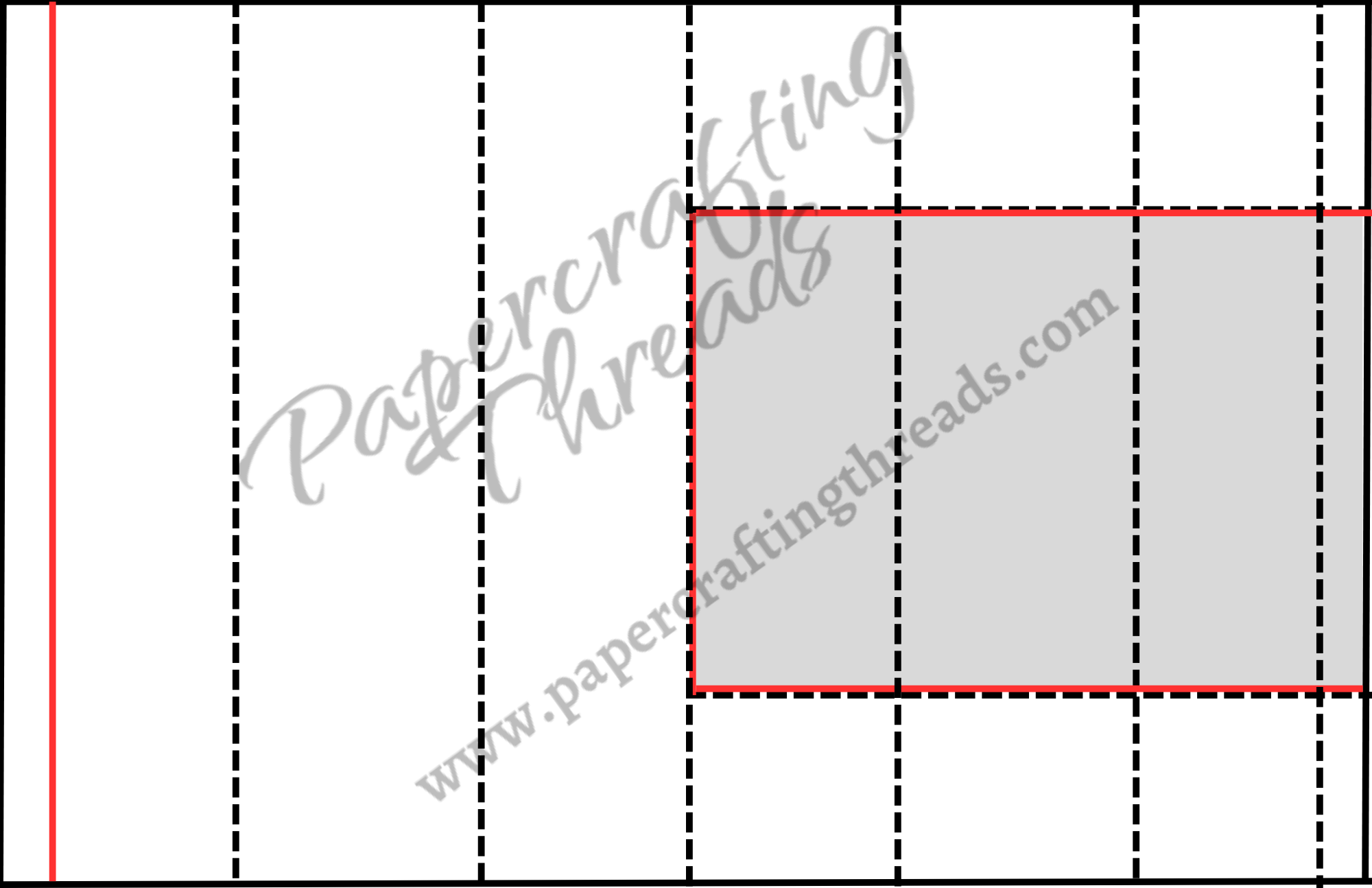 Place the card base back in the trimmer with the long edge at the top. Move the left side over to 5½” and score the narrow top and bottom ‘arms’, leaving the middle free of scoring. Repeat at 7″ and again at 8¼”.