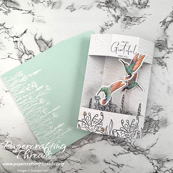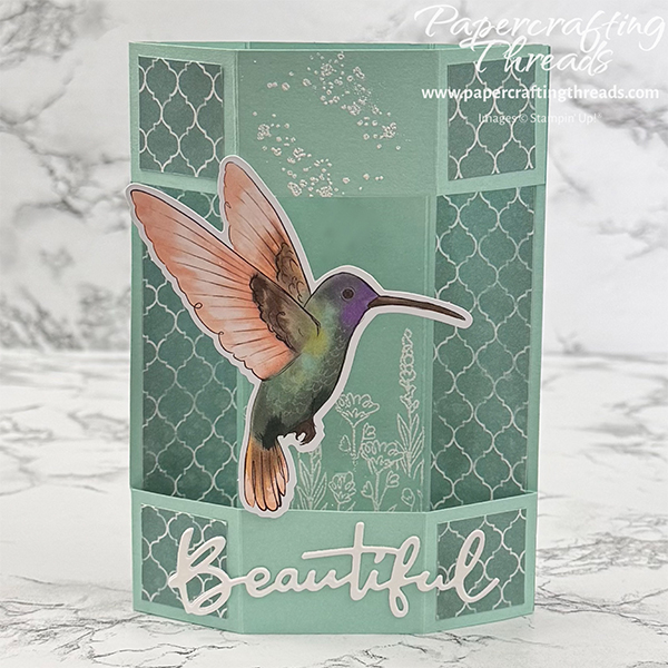 Hummingbirds hover in mid air in my Floating Hexagon card. Follow along as I walk you through the steps to make these 3D cards that pop up for display and fold flat to fit in an A2 envelope. No special tools or dies needed, just a great paper trimmer. Let’s get started!