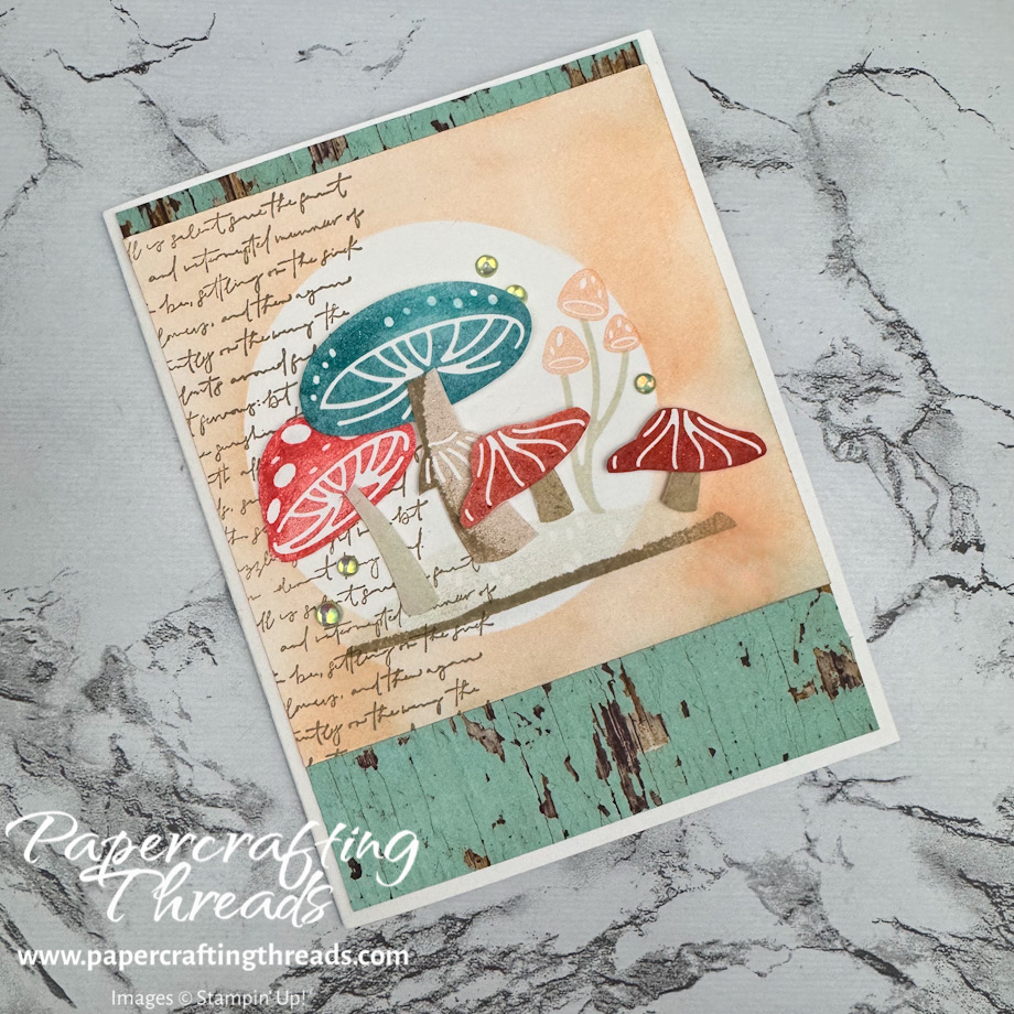 Toadstools meet Country Woods for Week #2 of Monday Mashup. I made my Monday Mashup card and uploaded it to FB but completely forgot about uploading it here with a few more details! The woodsy paper inspired the toned down colors for the Terrific Toadstools instead of the bright colors I’ve used in the past.